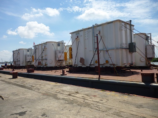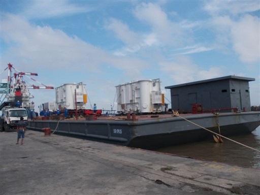 | Receiving transformers from vessel then load onto 3000 DWT barge for transporting | |